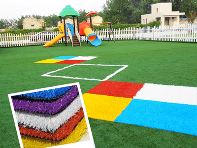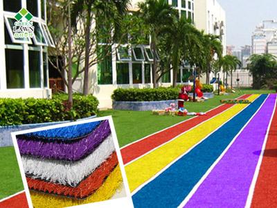 立即博幼兒園人造草坪,SGS不含鉛等重金屬檢測認證,不含甲醛,且幼兒園仿真草坪全部采用巴斯夫環保背膠。更有彩虹草和彩虹跑道,豐富寶寶的幼兒園色彩。立即博幼兒園草坪高密度直曲草絲混織,保護寶寶免受摔倒損傷。
